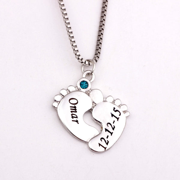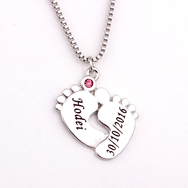 Revisit that special day in your life with this beautiful Baby Feet necklace with Birthstone and Baby's name engraved.